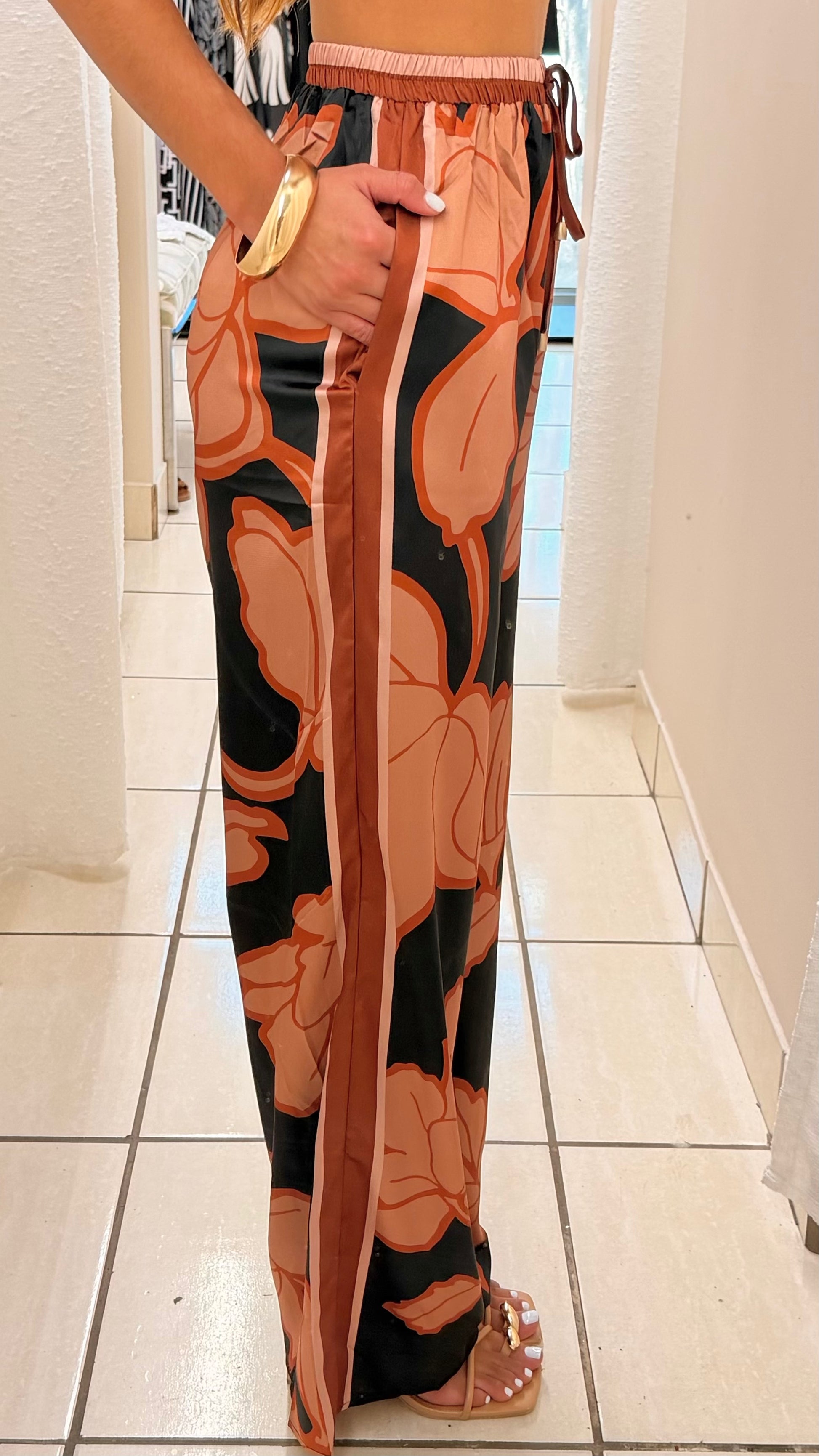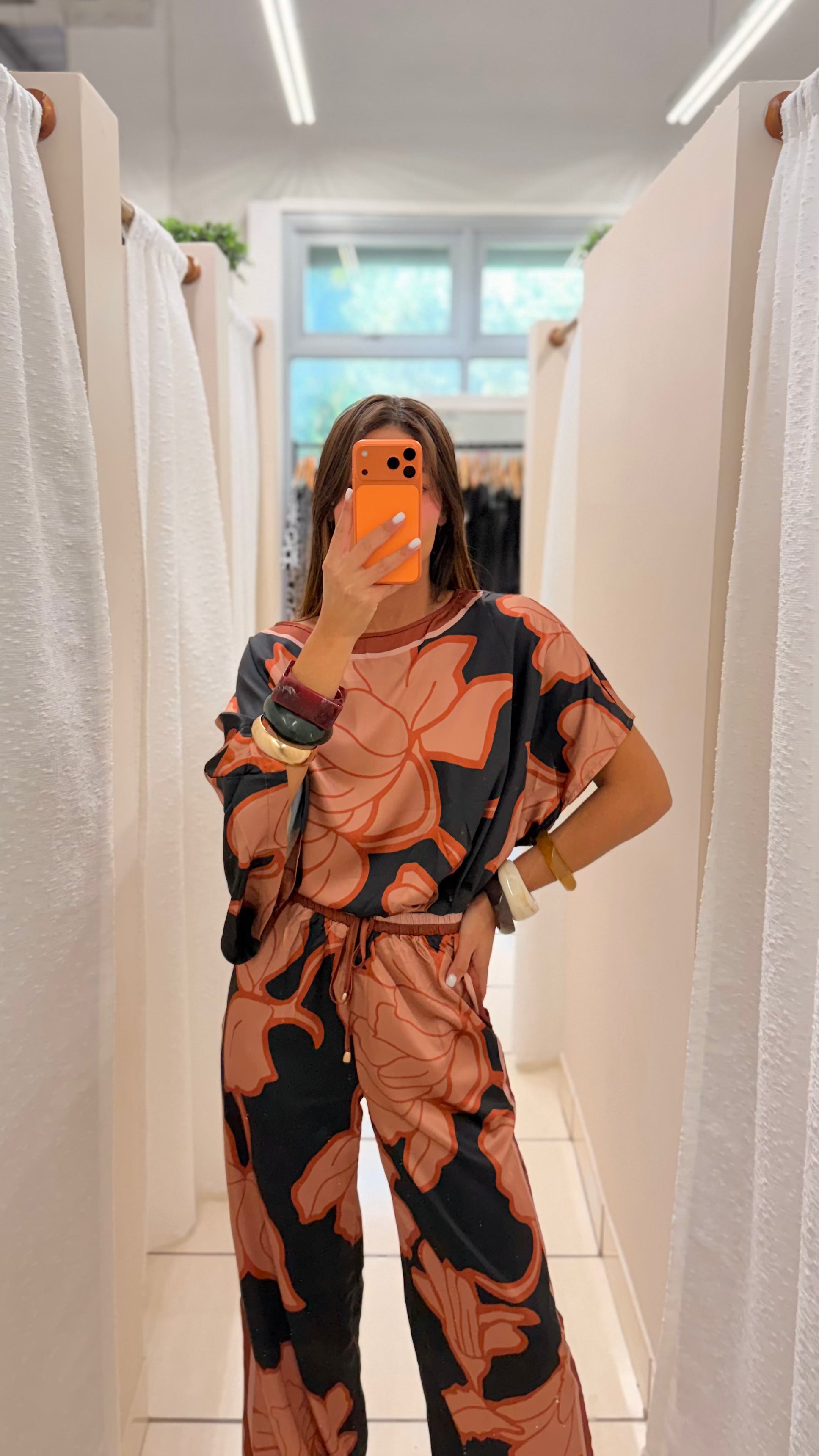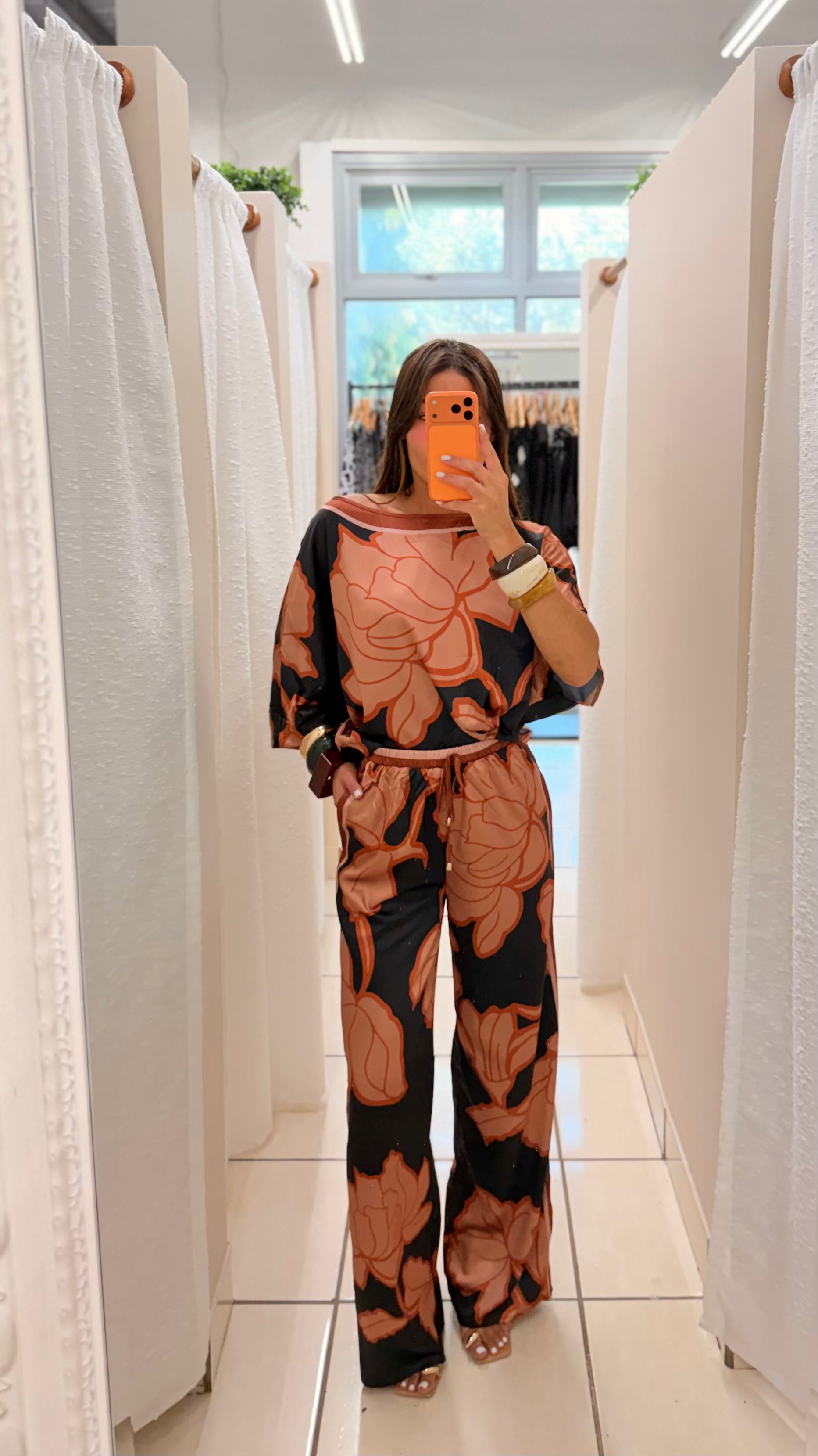Abstract floral print in terracotta and black tones