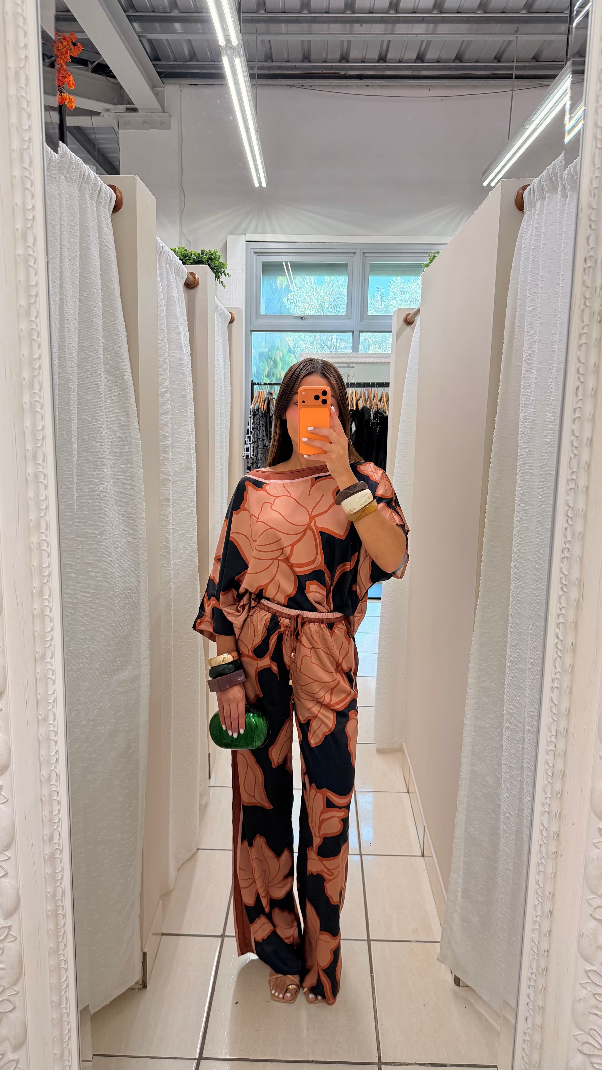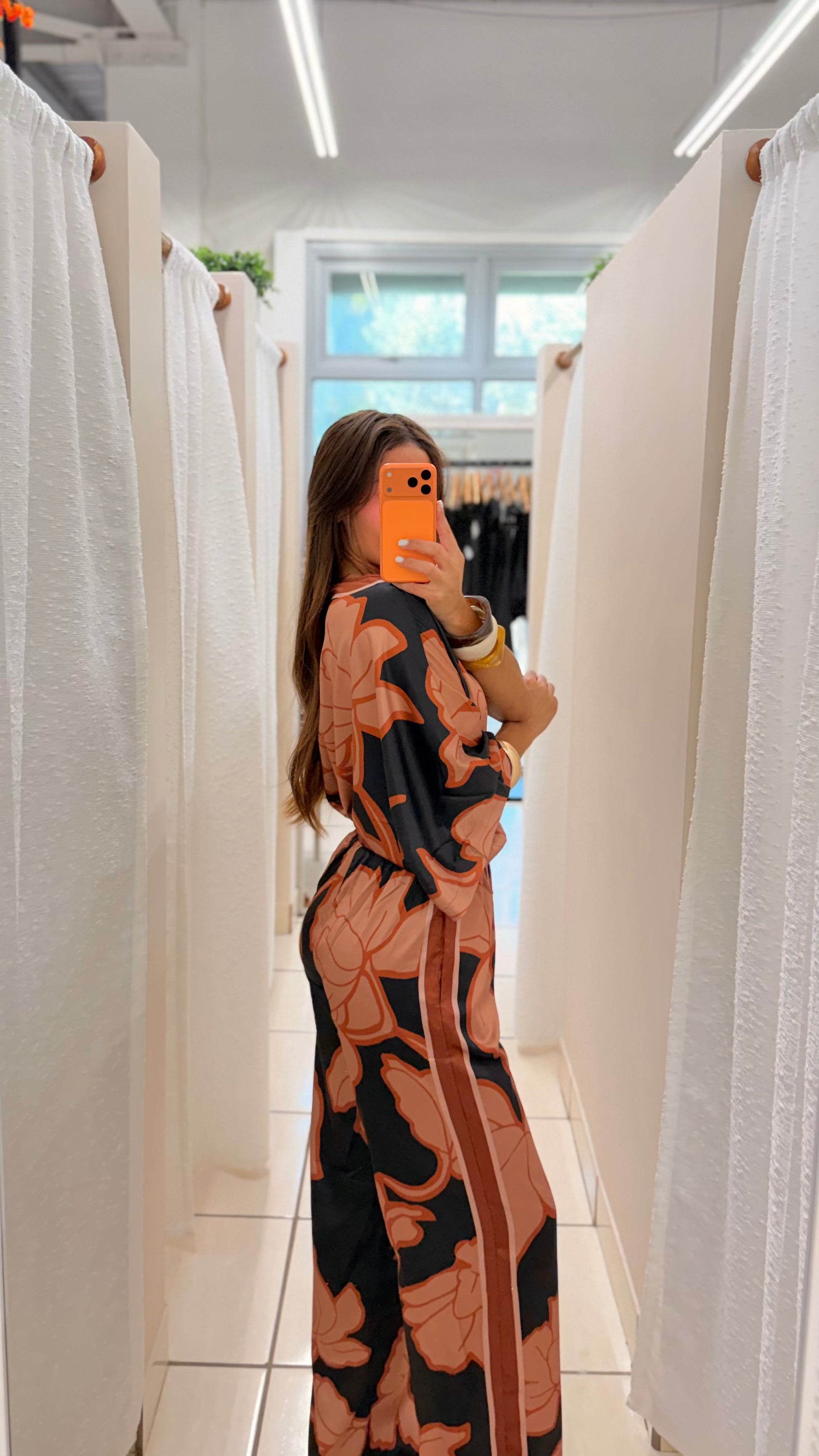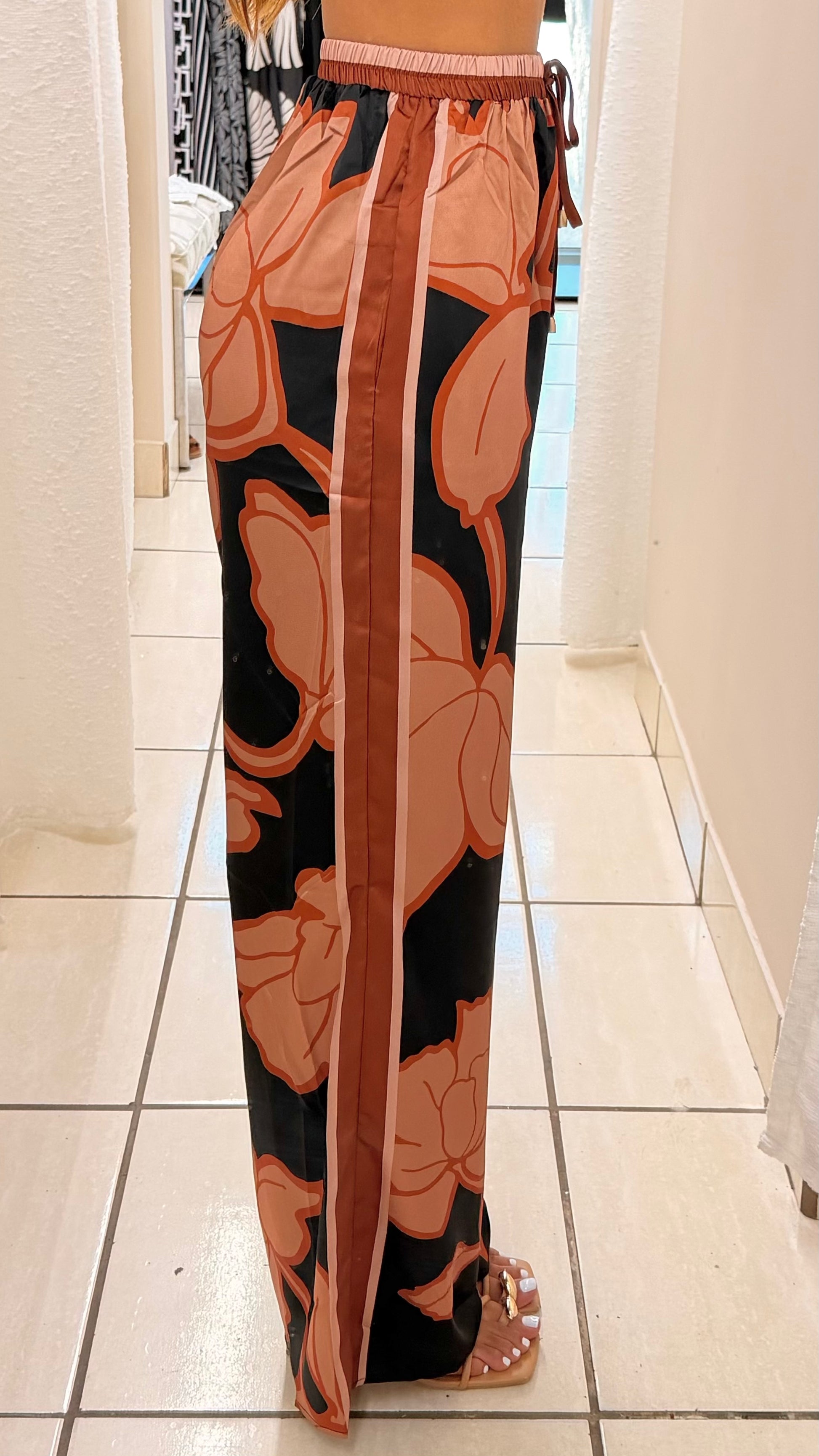 Abstract floral print in terracotta and black tones