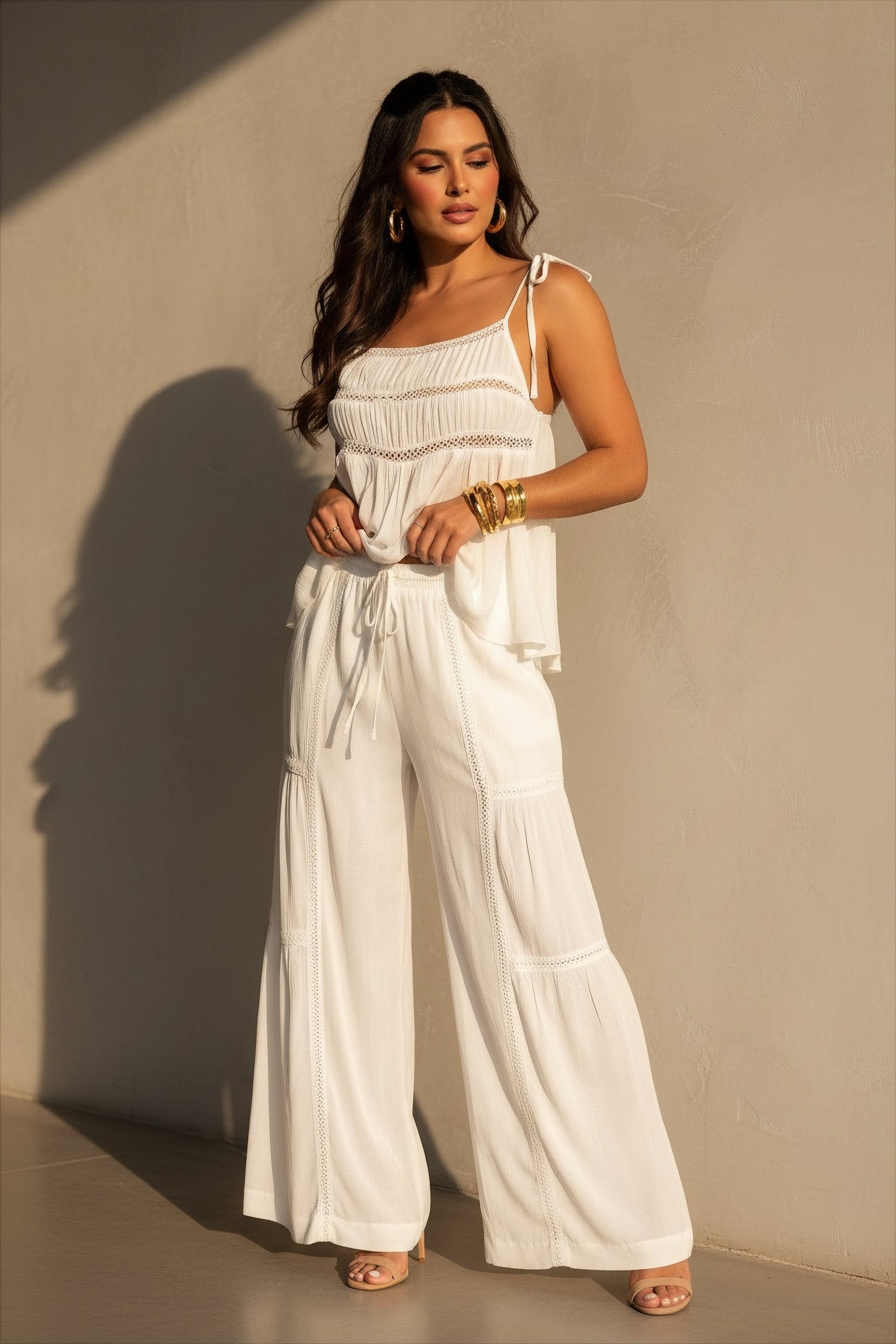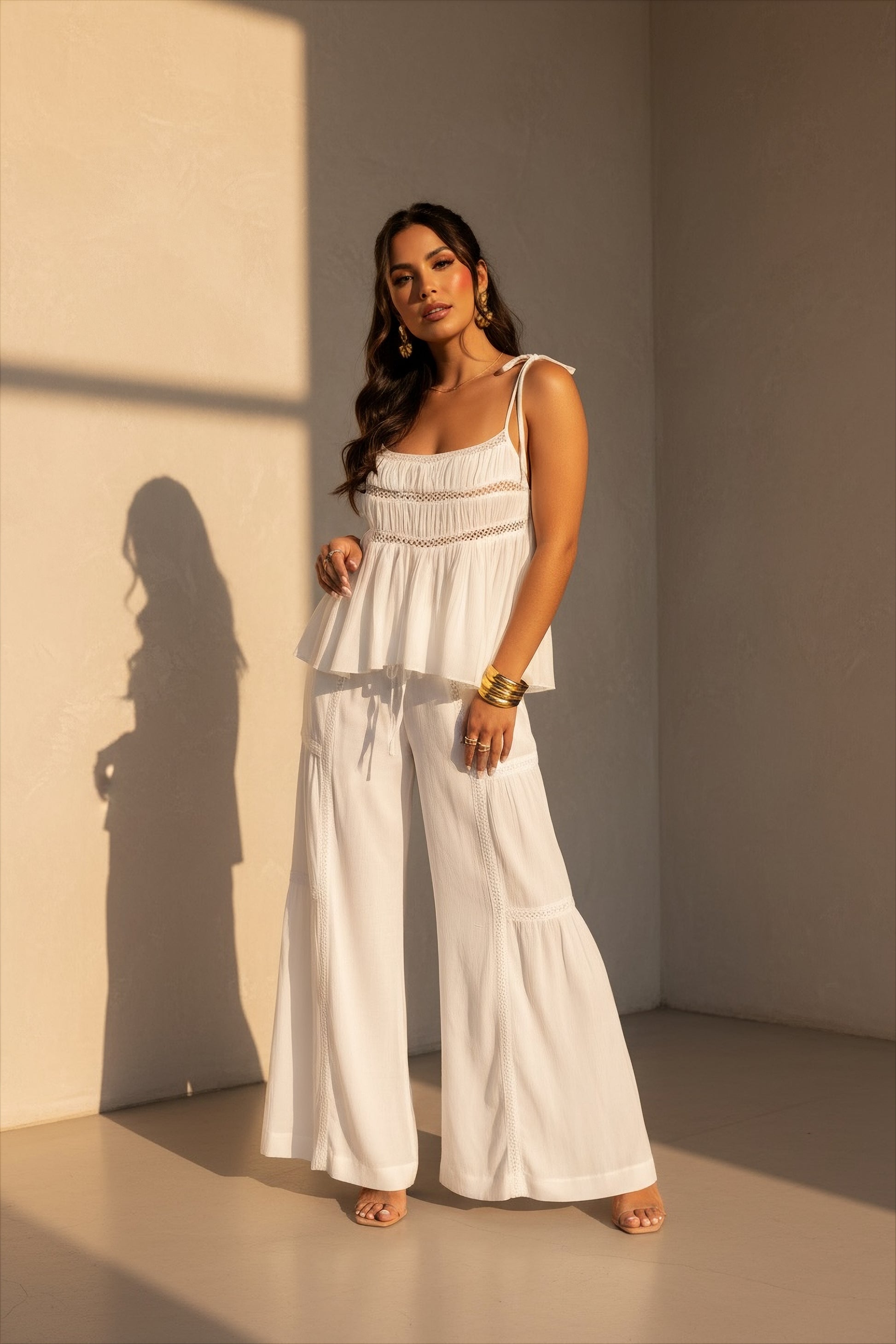 - Lightweight, semi-sheer textured fabric with delicate trim details