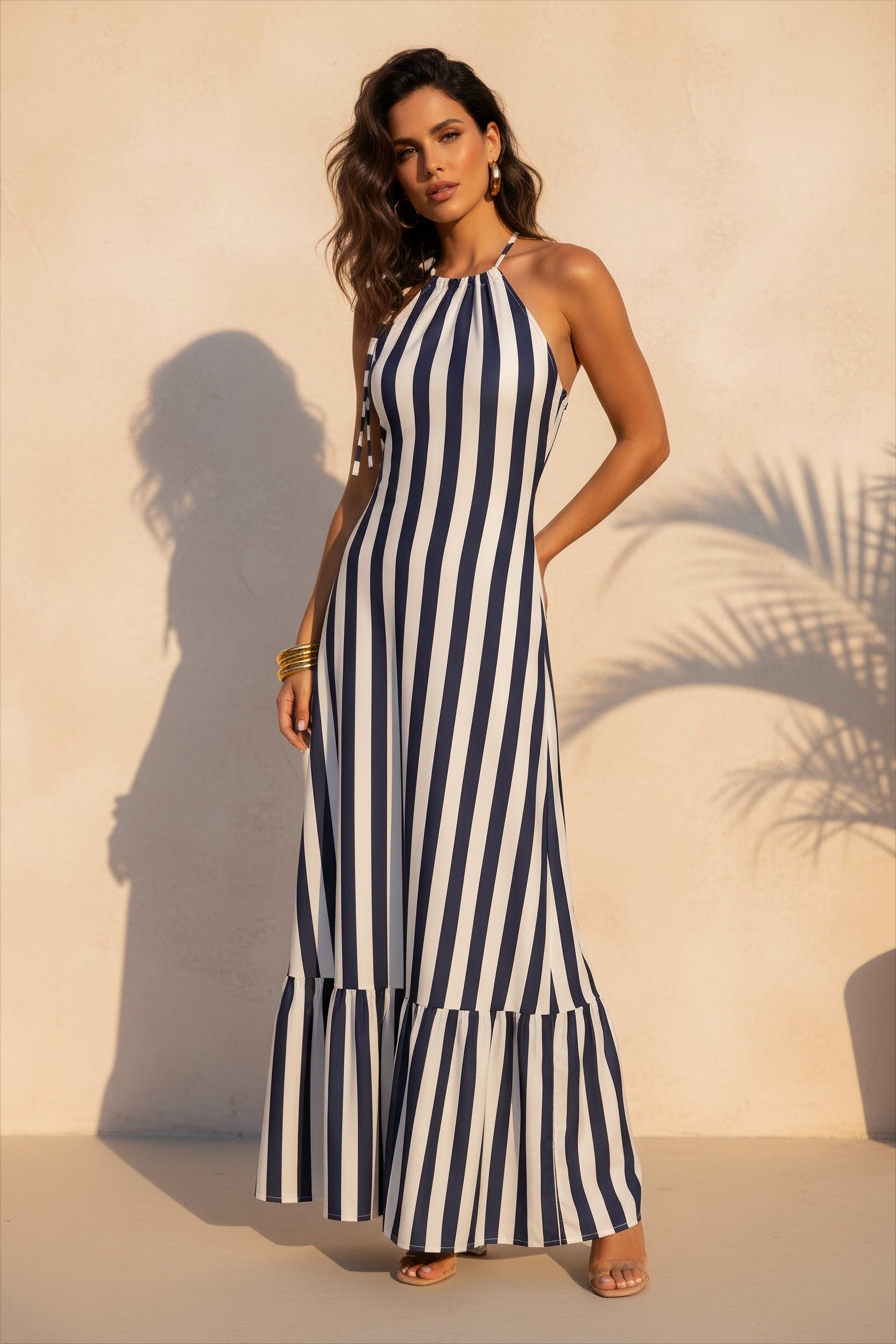 - Halter neckline with adjustable tie