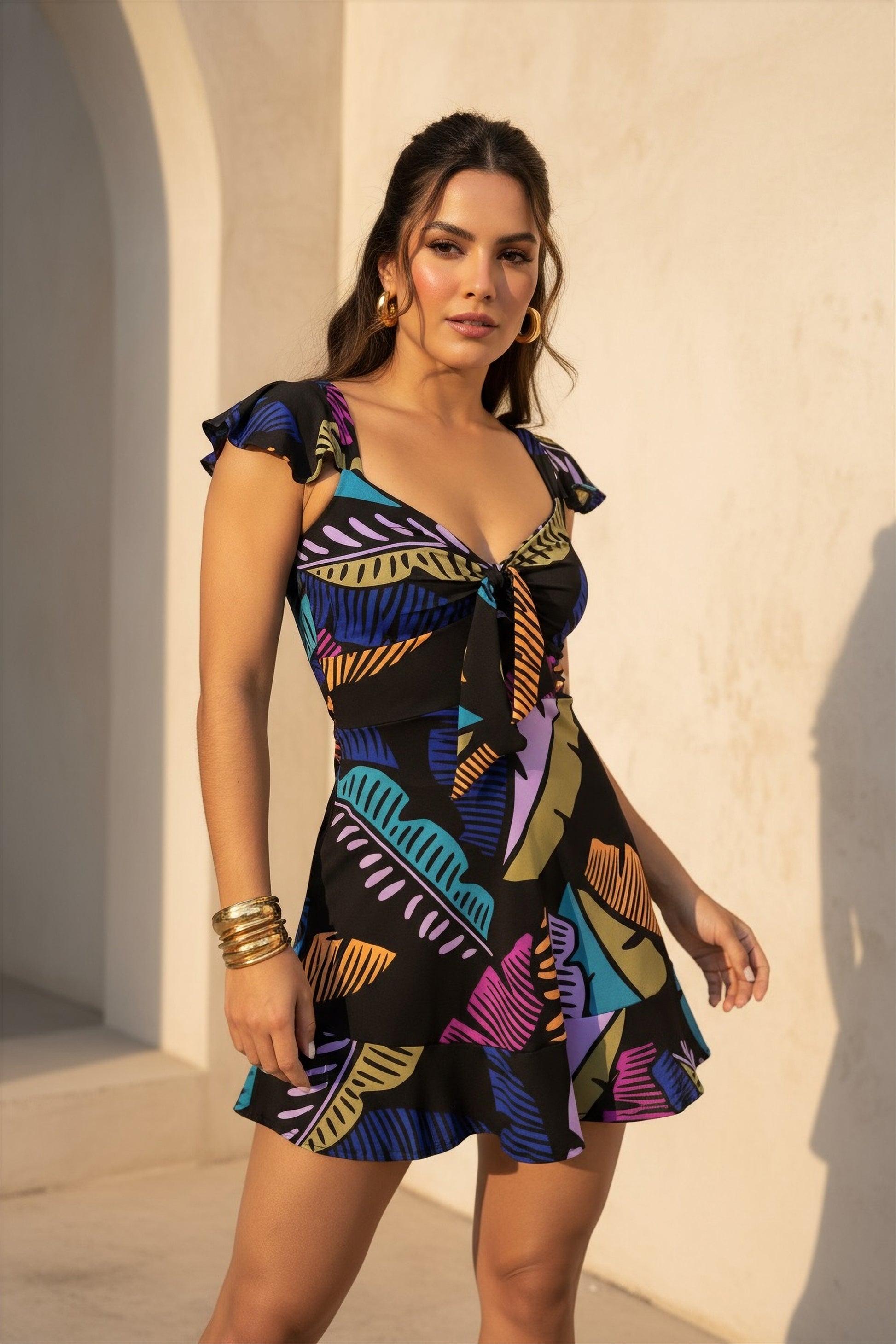 - Flattering V-neck top with front tie detail
