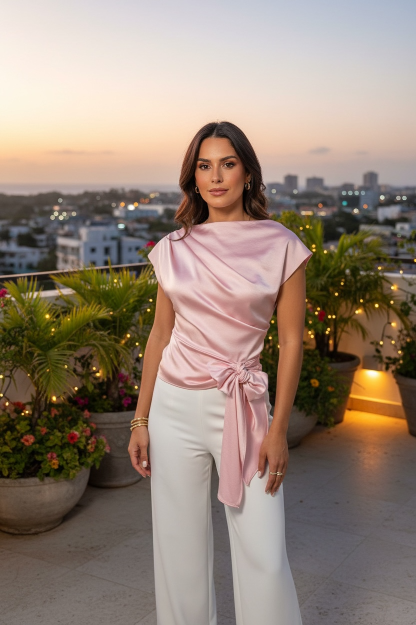 Soft, fluid top with an elegant draped silhouette